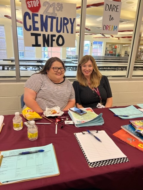 Annie Smith, right, and Lindsey Jessie, left, invite kids to be part of 21st Century after school program. Photo by Jennifer Moonsong