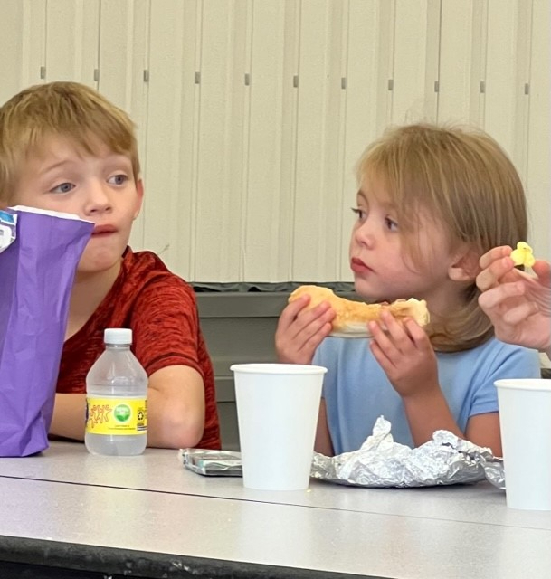 Families dined on hotdogs, brownies, and popcorn at the back to school bash. Photo by Jennifer Moonsong