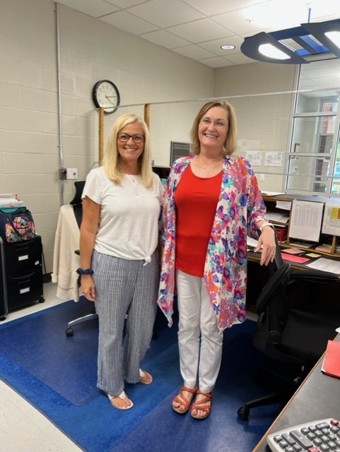 Ms. Gina and Ms. Theresa, the first friendly faces you see, welcomed students with smiles. Photo by Jennifer Moonsong
