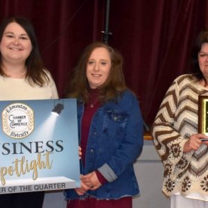 Librarian Ms. Stephanie, Ms. Pattie, and Ms. Cierra with resources to make for a successful school year. Photo by Jennifer Moonsong