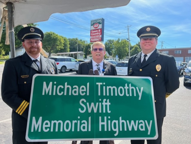 Last Thursday under sunny skies a crowd gathered at the IGA parking lot on Highway 90 in Glasgow, to honor the memory of Mike Swift, with the announcement of the Michael Timothy Swift Memorial Highway.