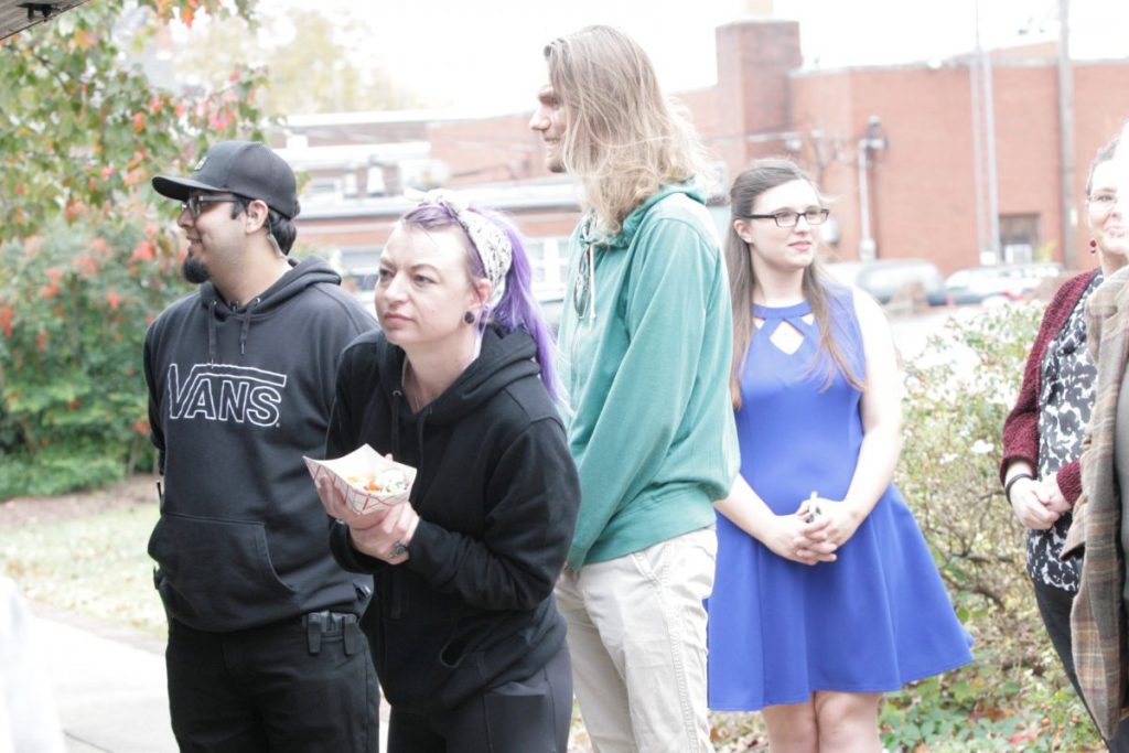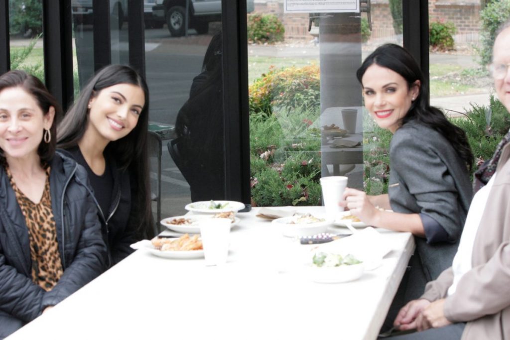 From left, Valentina Izarra, Marielena Davila, and Laura Carmine having lunch from their own food truck they bring with them at the corner of South Green and South Public Square across from George J’s. Photo/Jeff Jobe