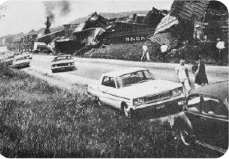 On June 13 of 1966, a freight train derailed just outside of downtown Horse Cave. The cargo on some of the train’s cars included containers of chemicals that were headed to the U.S. Army Terminal Command facility in New Orleans.