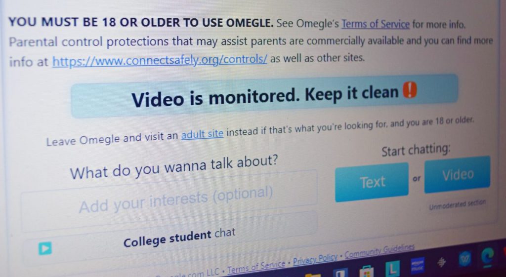 Omegle does not require registration or user names. An individual, even a child, can use the app or the website to immediately begin chatting with a stranger. Photo by Mary Beth Sallee.
