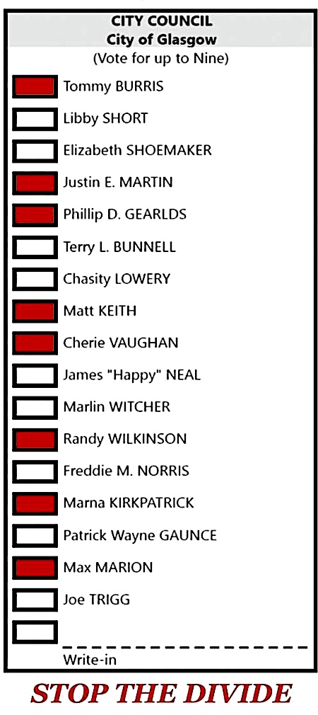 Thank you for your endorsement Barren County Progress. I am very involved in the community and I’m excited to see what can be done to help at the city level. I am honored to be a resident of Glasgow and look forward to meeting more of you.