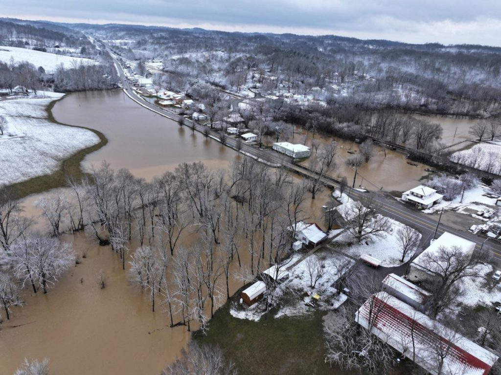 Flood waters rose throughout the Bonnieville area. Aerial Photo by Mason West.