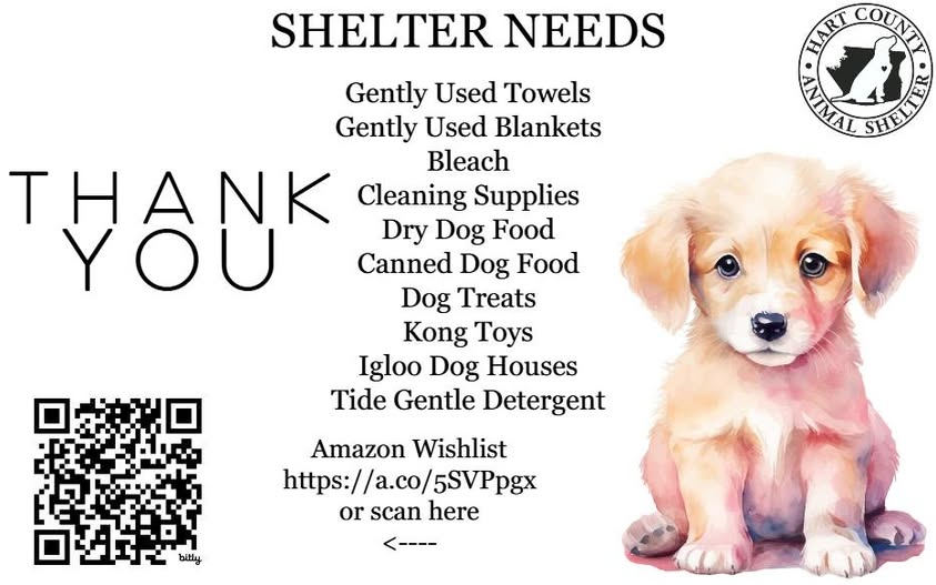 The Hart County Animal Shelter is always accepting donations.