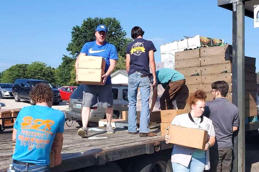From the Abundance of the Hart Food Bank partners with Feeding America through Elizabethtown. On the third Friday of each month, food is distributed to qualifying families outside the gymnasium of Munfordville Baptist Church. Photo submitted.