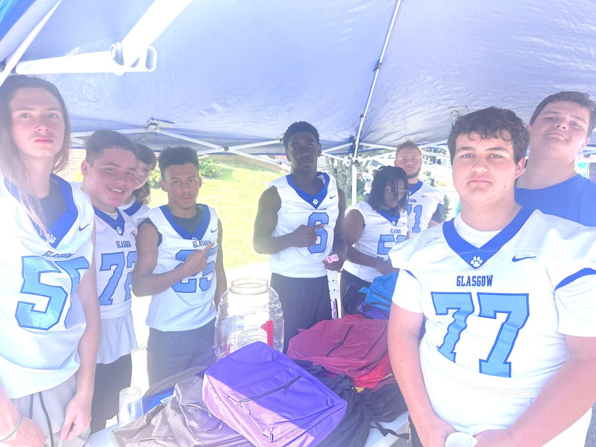 Glasgow Scotties football players volunteer at Rock the Block, an event geared to help students be successful this school year. The event was hosted by the Old Timers Reunion. Photo by Jeff Jobe