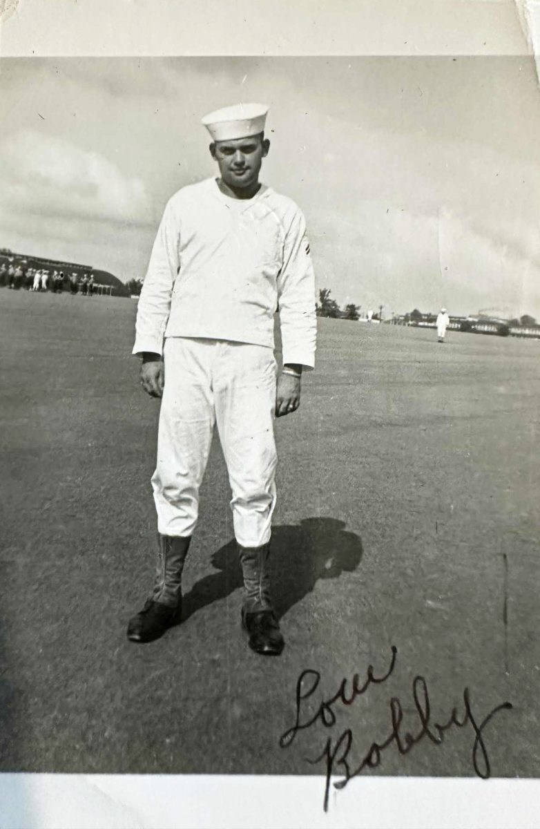 Here, Atwell is pictured in a drill field. In the bottom right, he had signed the photo “Love Bobby” but doesn’t recall who he had sent the photo to. Photo submitted.