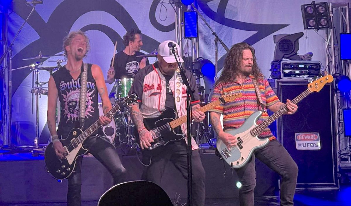 Black Stone Cherry returns for a hometown show on December 19 and 20. From left, band members Ben Wells, Chris Robertson, and Steve Jewell, with John Fred Young on drums in background. Both shows were sold out. Photo submitted