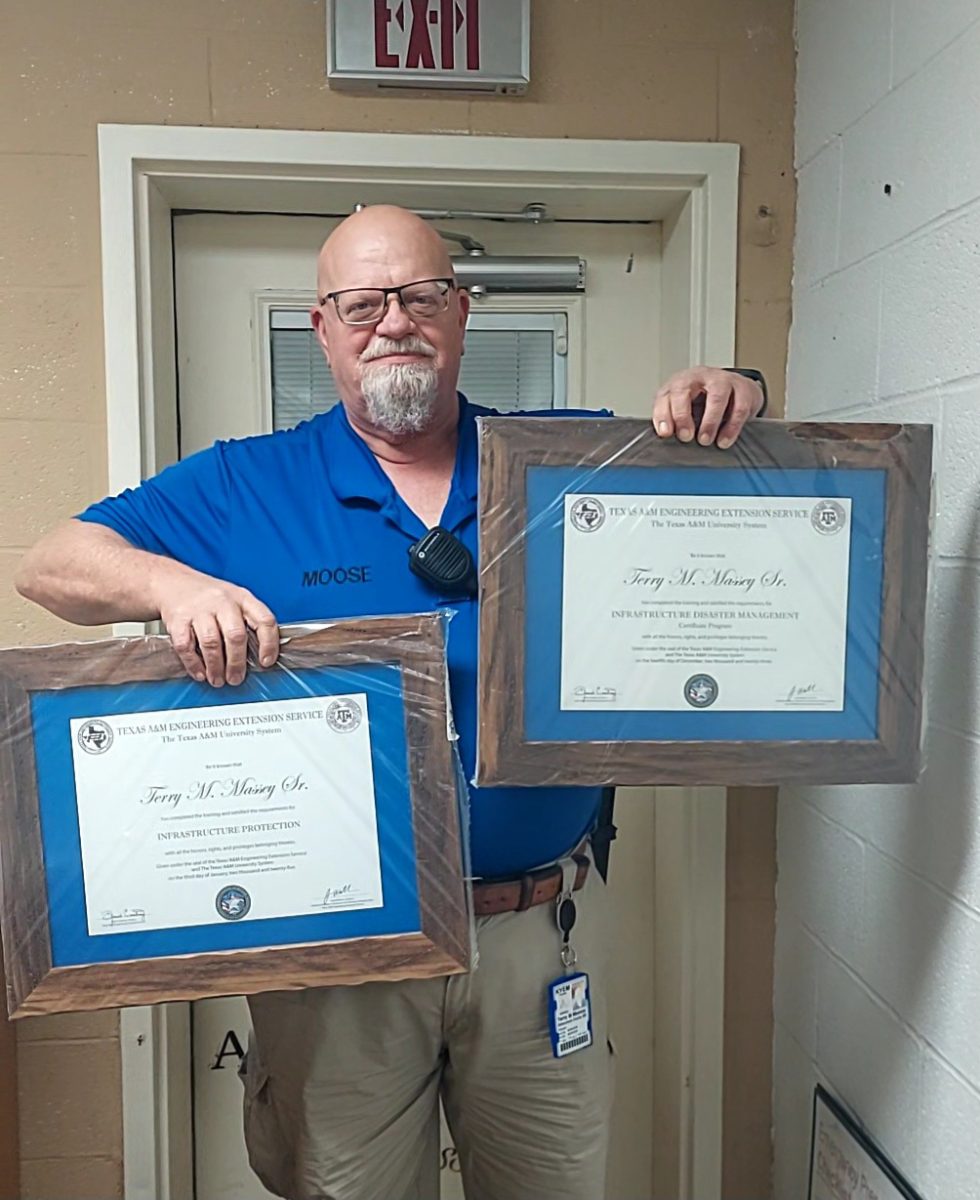 Edmonson County Emergency Management Director Terry Massey recently completed two major certifications through the Texas A&M Engineering Extension Service (TEEX): Infrastructure Protection and Infrastructure Disaster Management.