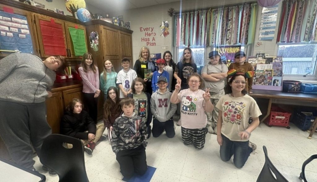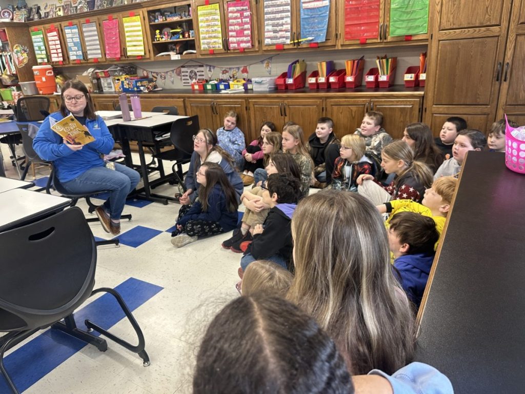 Kaitlyn Slaughter with LifeSkills, Inc. reading to students. Photo | Metcalfe County Schools