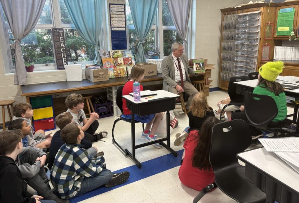 Dr. John Miller of Miller Family Dentistry reading to a class. Photo | Metcalfe County Schools