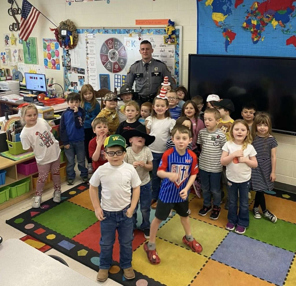 Kentucky State Trooper Trent Tooley with students. Photo | Metcalfe County Schools