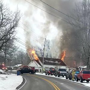 Lynn Bledsoe Gimlet Managing Editor CHALYBEATE, Ky. — A towering column of smoke could be seen for miles Tuesday afternoon as a fast‑moving fire tore through the former Chalybeate Church building, home to Scott Skaggs Photography and Eric Skaggs Cabinet Shop, leaving the structure in ruins. The first call hit Edmonson County…